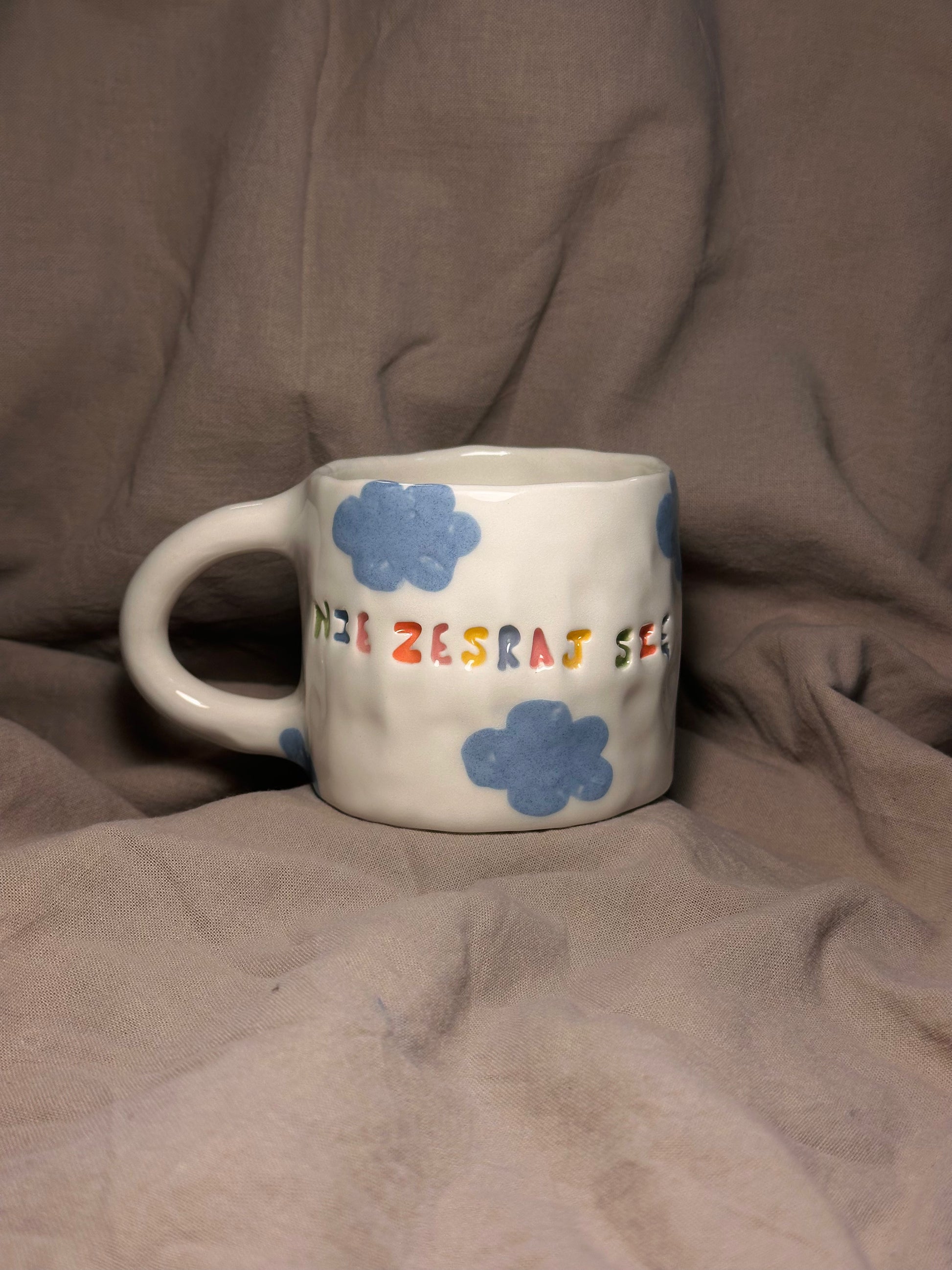 Ręcznie lepiony i malowany, więc każdy trochę inny, trochę krzywy, z możliwą dołeczką tu czy tam — ale właśnie w tym cały jego urok.
