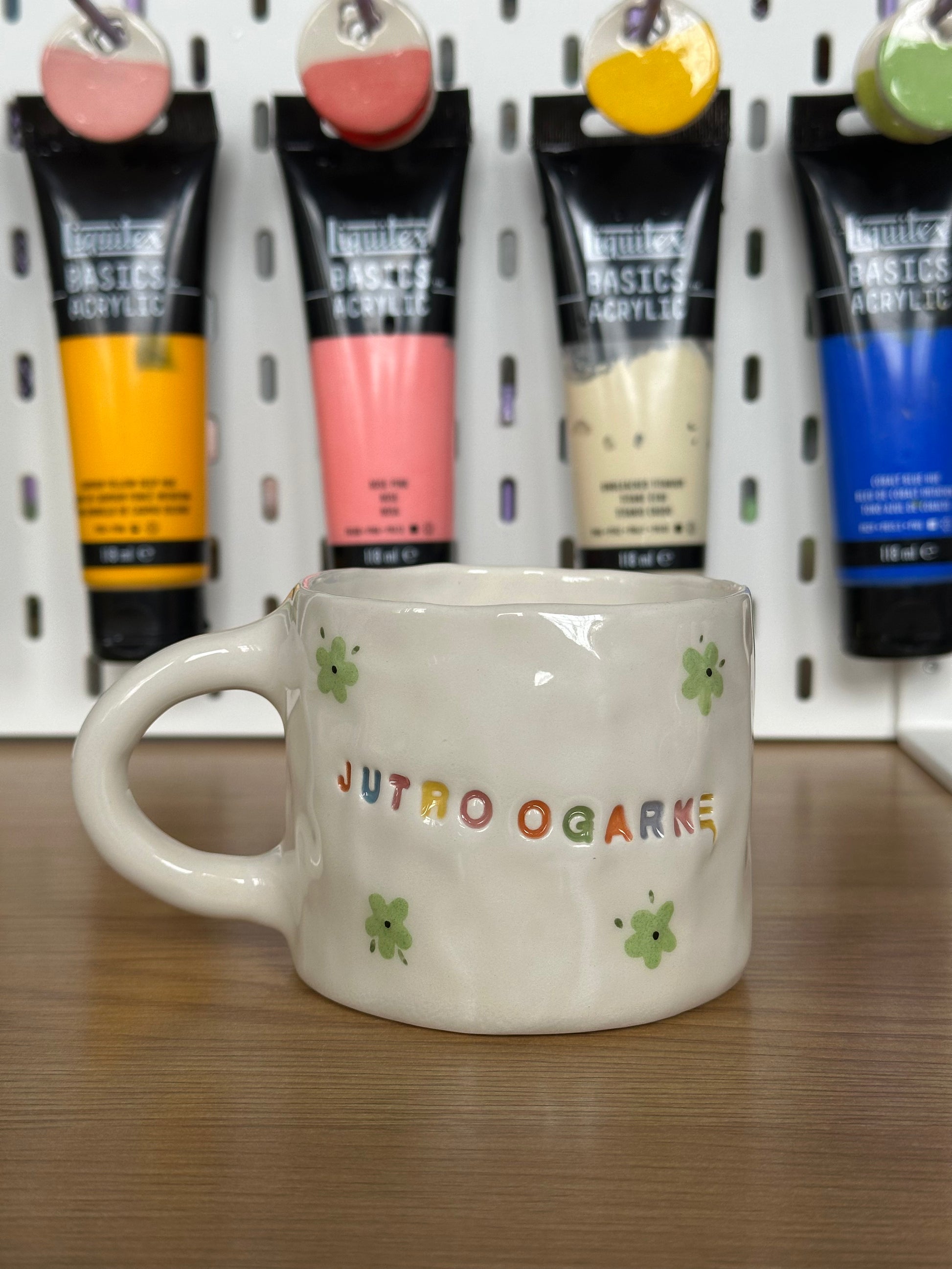 Ręcznie lepiony i malowany, więc każdy trochę inny, trochę krzywy, z możliwą dołeczką tu czy tam — ale właśnie w tym cały jego urok.