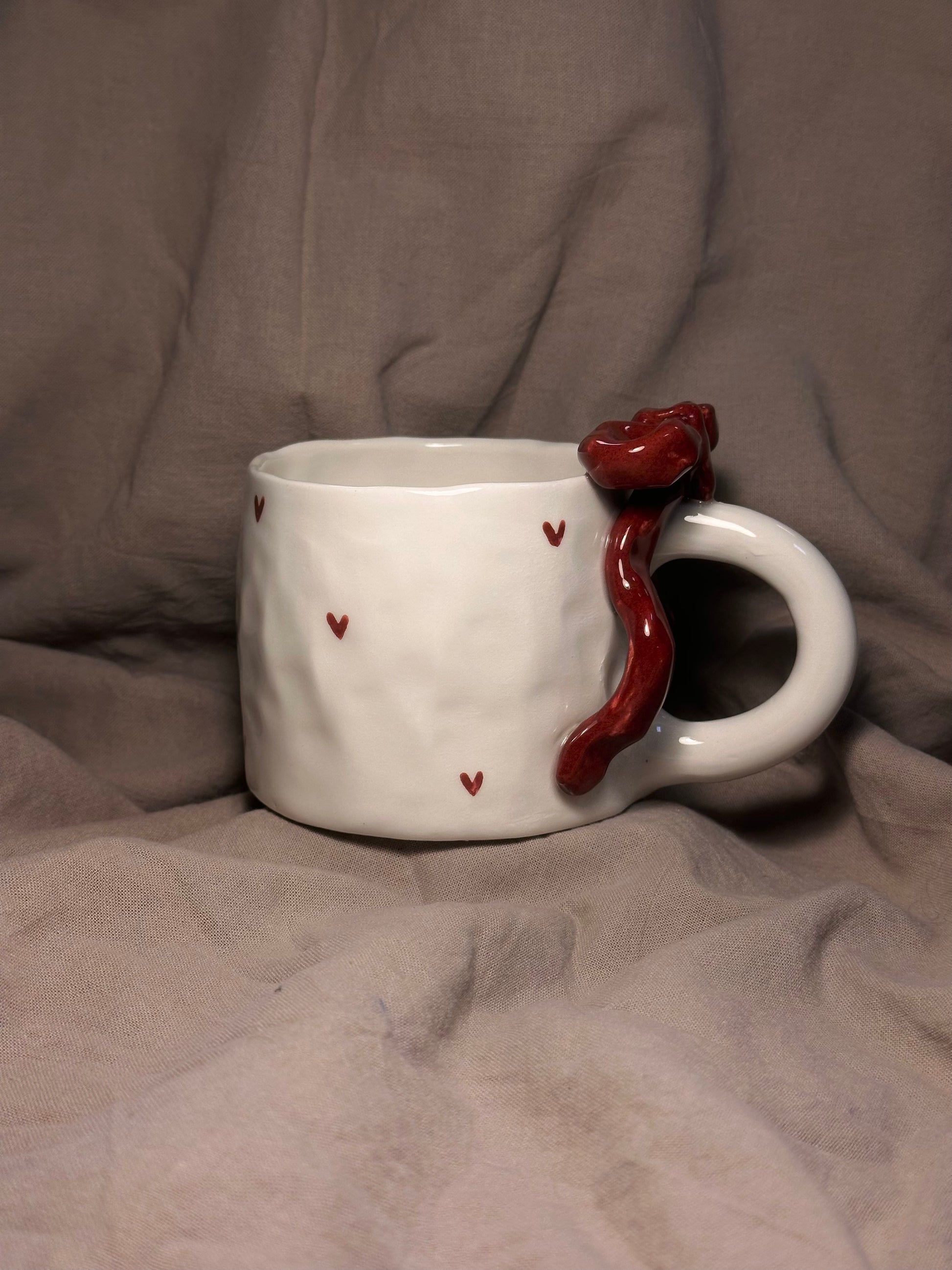 Ręcznie lepiony i malowany, więc każdy trochę inny, trochę krzywy, z możliwą dołeczką tu czy tam — ale właśnie w tym cały jego urok.