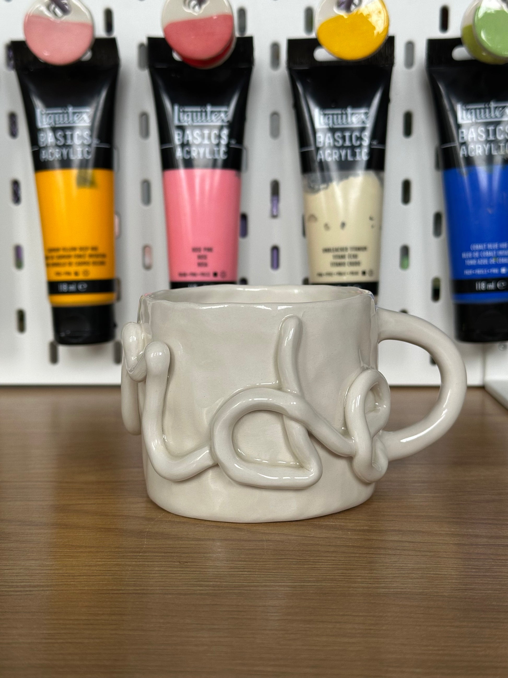 Ręcznie lepiony i malowany, więc każdy trochę inny, trochę krzywy, z możliwą dołeczką tu czy tam — ale właśnie w tym cały jego urok.