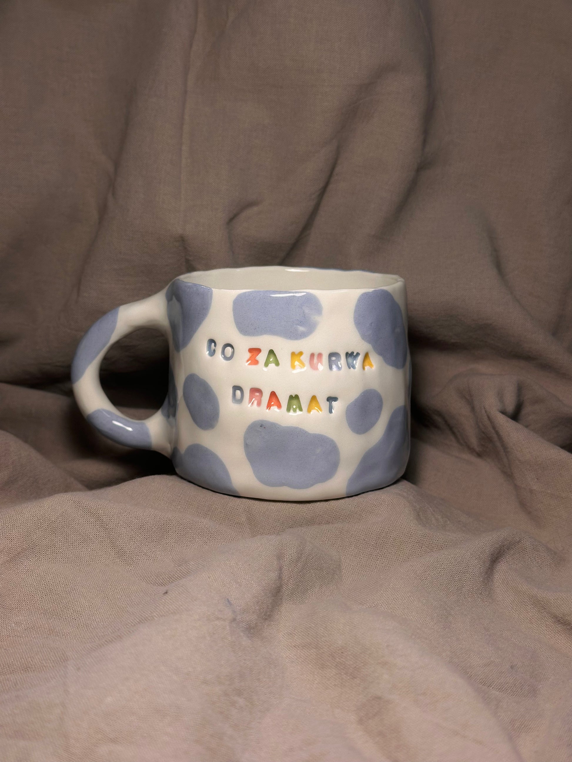 Ręcznie lepiony i malowany, więc każdy trochę inny, trochę krzywy, z możliwą dołeczką tu czy tam — ale właśnie w tym cały jego urok.