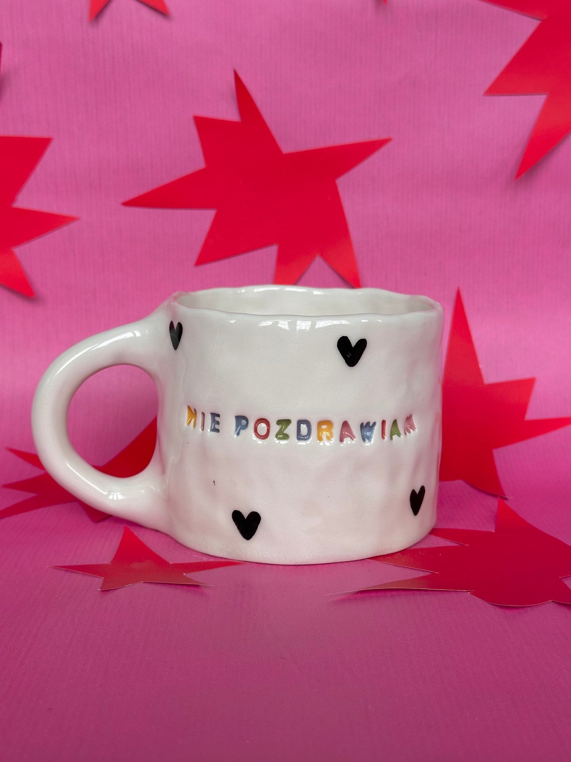 Ręcznie lepiony i malowany, więc każdy trochę inny, trochę krzywy, z możliwą dołeczką tu czy tam — ale właśnie w tym cały jego urok.