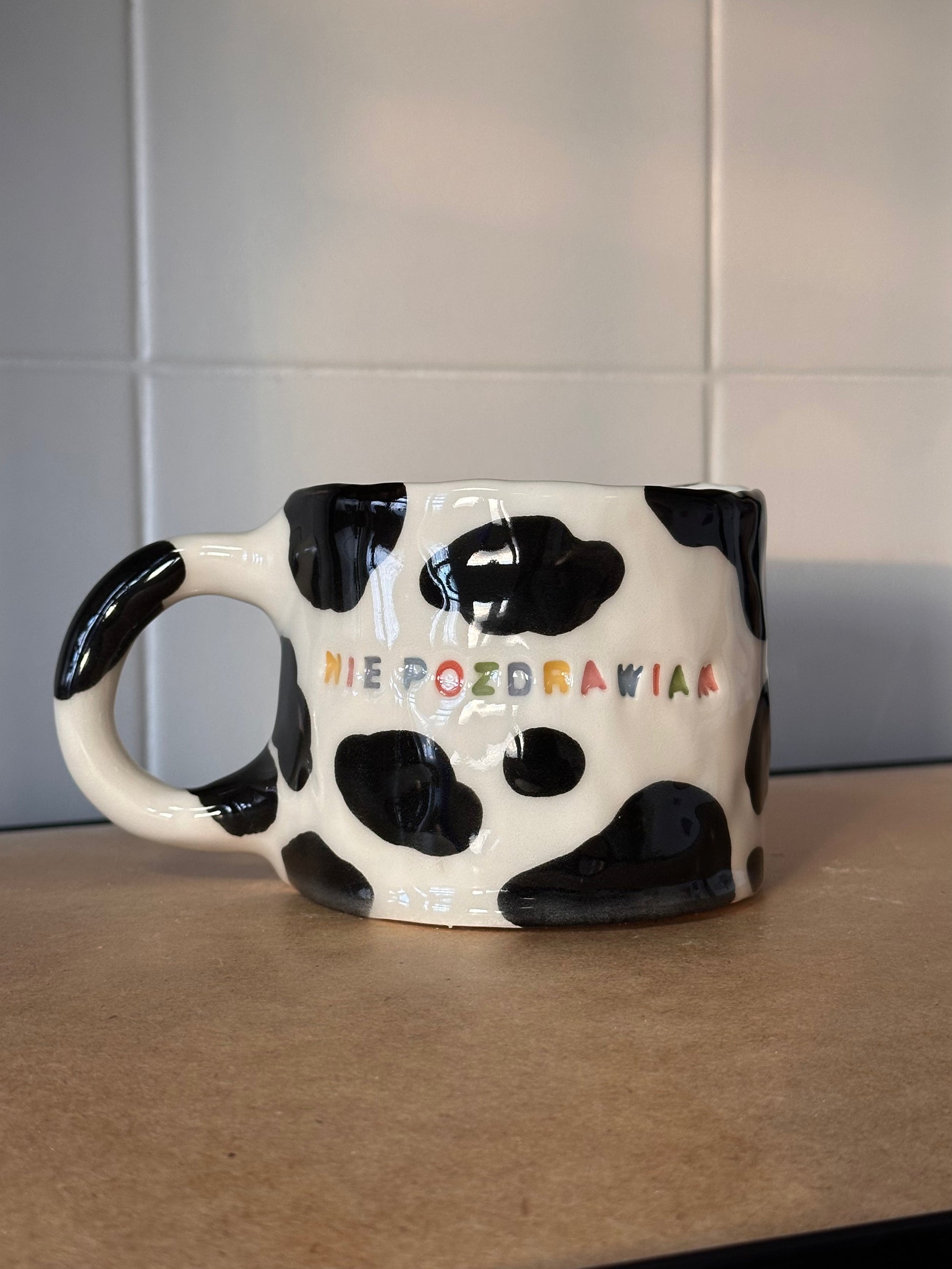 Ręcznie lepiony i malowany, więc każdy trochę inny, trochę krzywy, z możliwą dołeczką tu czy tam — ale właśnie w tym cały jego urok.