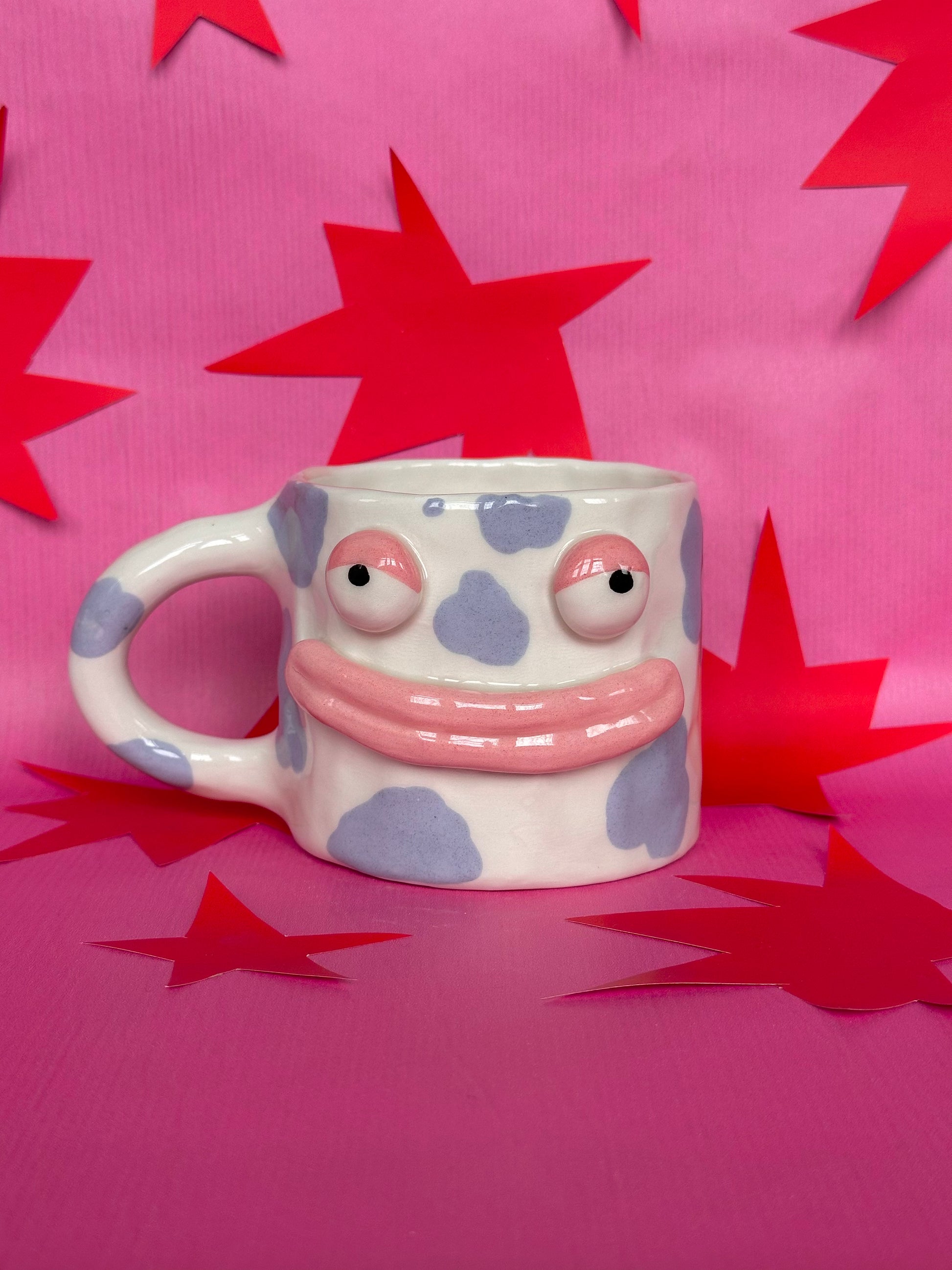 Ręcznie lepiony i malowany, więc każdy trochę inny, trochę krzywy, z możliwą dołeczką tu czy tam — ale właśnie w tym cały jego urok.