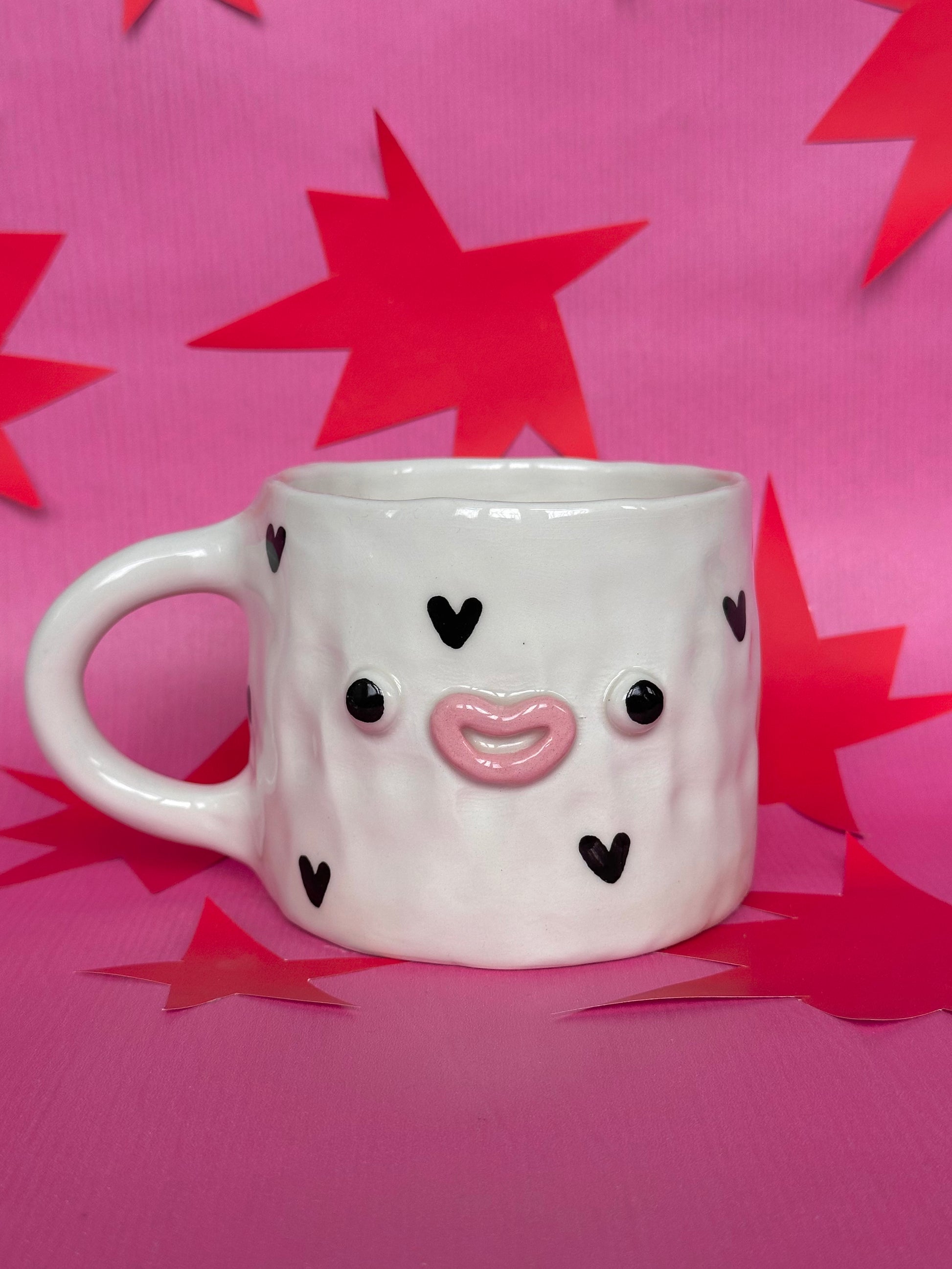 Ręcznie lepiony i malowany, więc każdy trochę inny, trochę krzywy, z możliwą dołeczką tu czy tam — ale właśnie w tym cały jego urok.